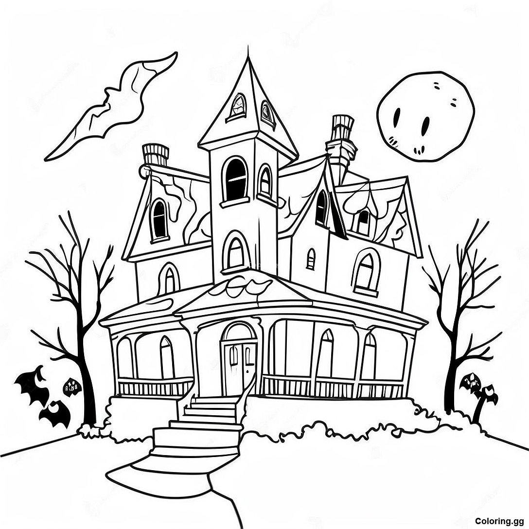 భయంకరమైన హాంటెడ్ హౌస్ రంగుల పేజీ