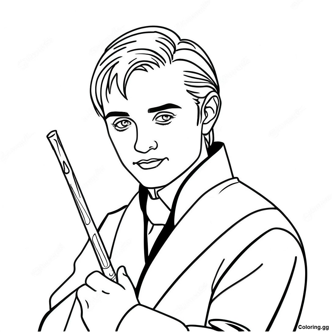 డ్రాకో మాల్ఫాయ్ వాండ్‌తో రంగుల పేజీ