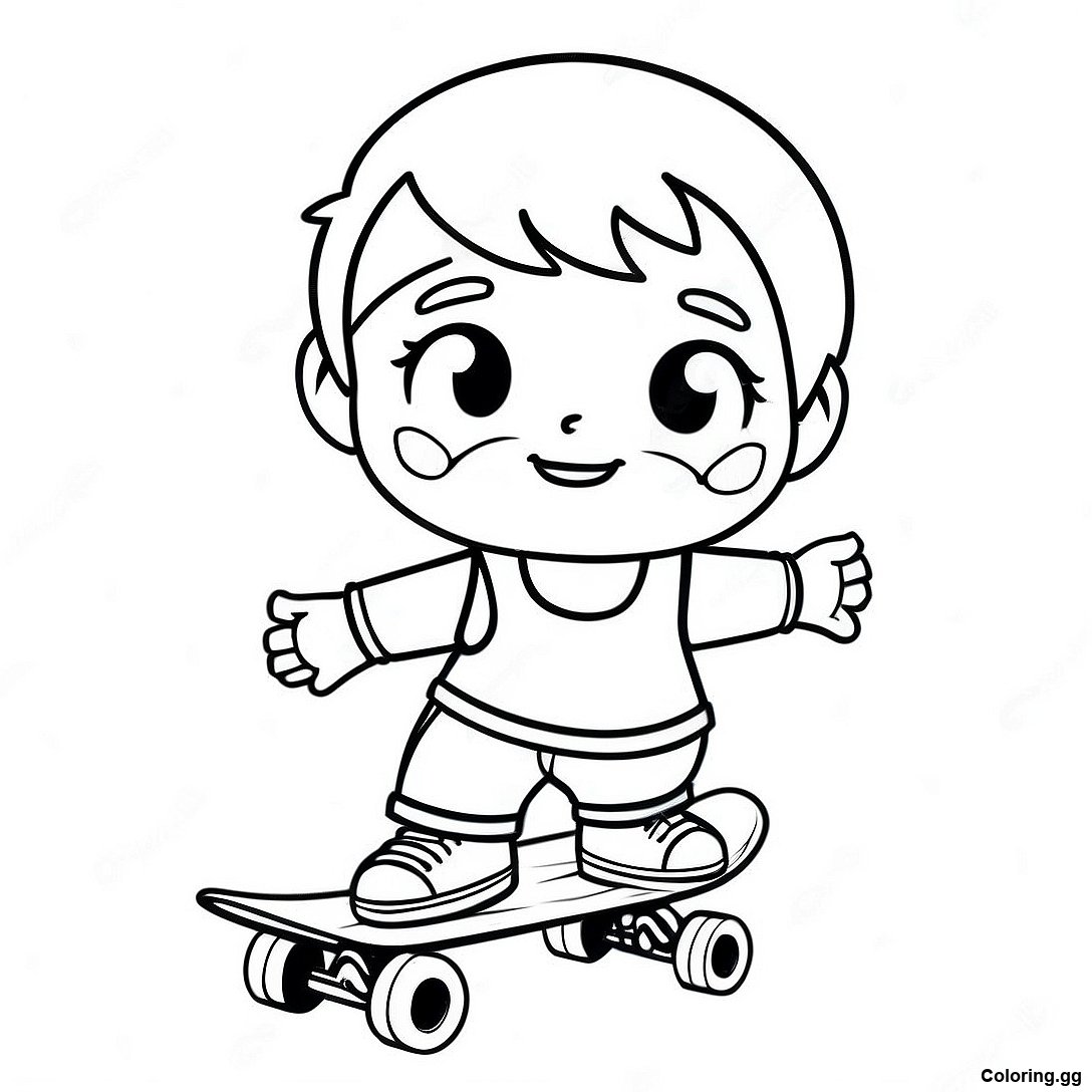 గాచా లైఫ్ టాంబాయ్ స్కేట్‌బోర్డ్‌తో రంగుల పేజీ యొక్క ముద్రించదగిన పీడీఎఫ్‌ను డౌన్లోడ్ చేయండి