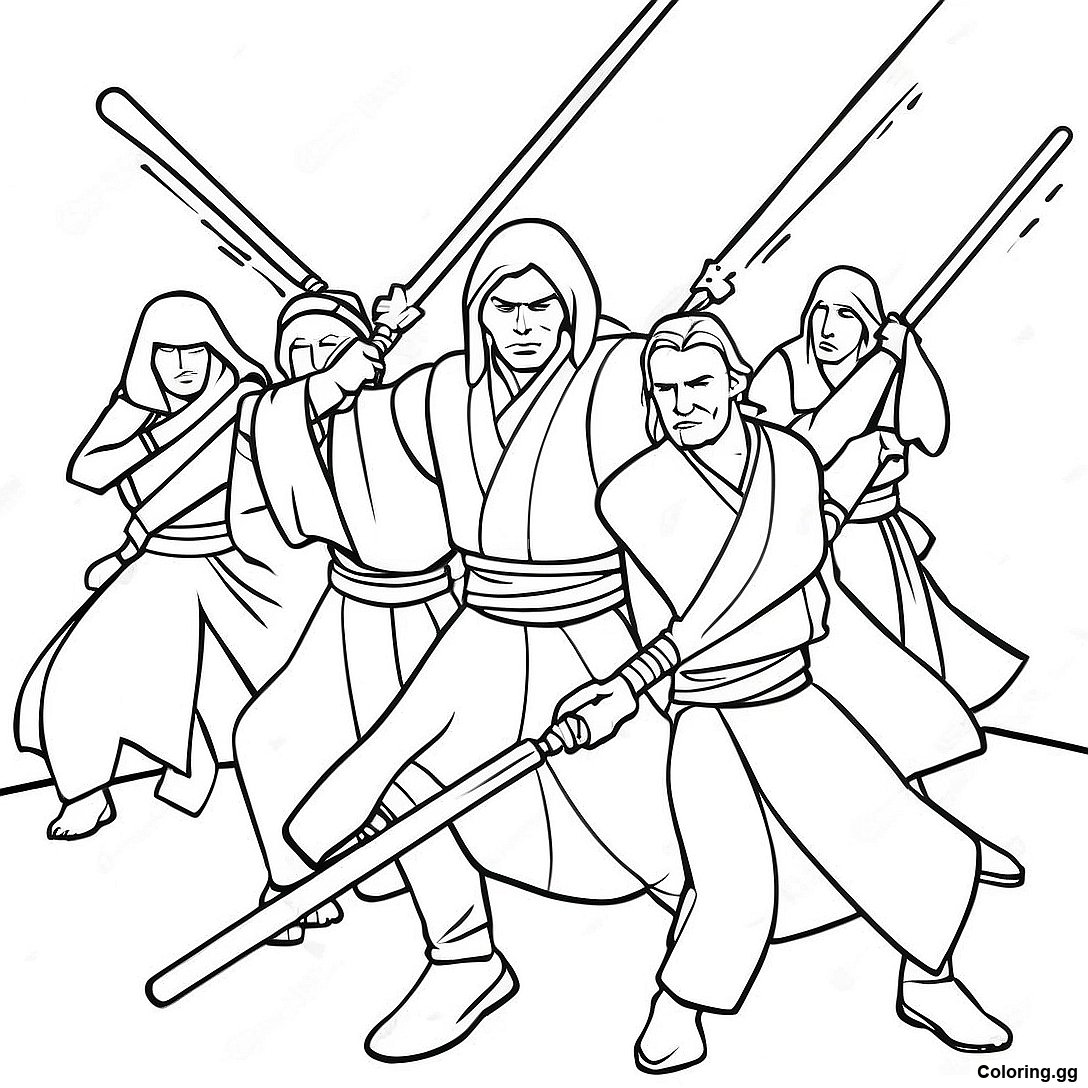 జెడి నైట్లు చర్యలో రంగుల పేజీ యొక్క ముద్రించదగిన పీడీఎఫ్ను డౌన్లోడ్ చేయండి