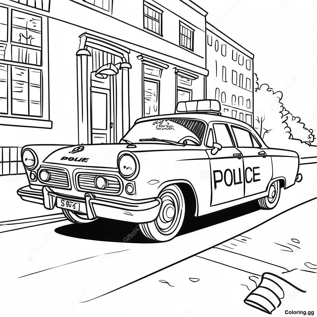 క్లాసిక్ పోలీస్ కారు రంగుల పేజీ యొక్క ముద్రించదగిన పీడీఎఫ్ను డౌన్లోడ్ చేయండి