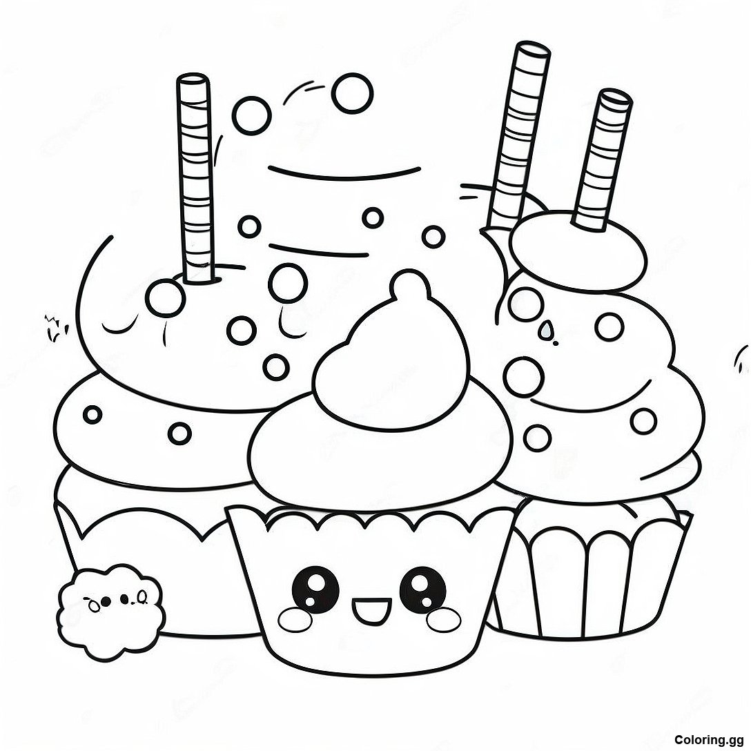 క్యూట్ నమ్ నామ్ కప్‌కేక్‌లతో రంగుల పేజీ