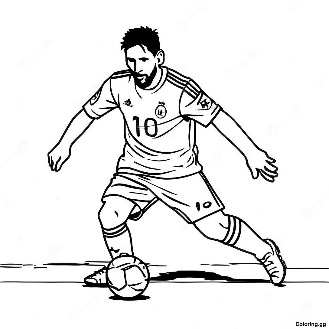 లియోనెల్ మెస్సీ బంతిని డ్రిబ్లింగ్ చేస్తున్న రంగుల పేజీ