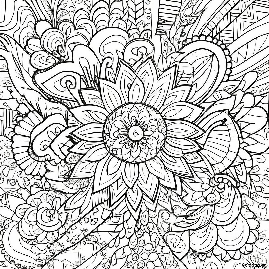 రంగులైన అందమైన ట్రిప్పీ మండల రంగుల పేజీ యొక్క ముద్రించదగిన పీడీఎఫ్‌ను డౌన్లోడ్ చేయండి