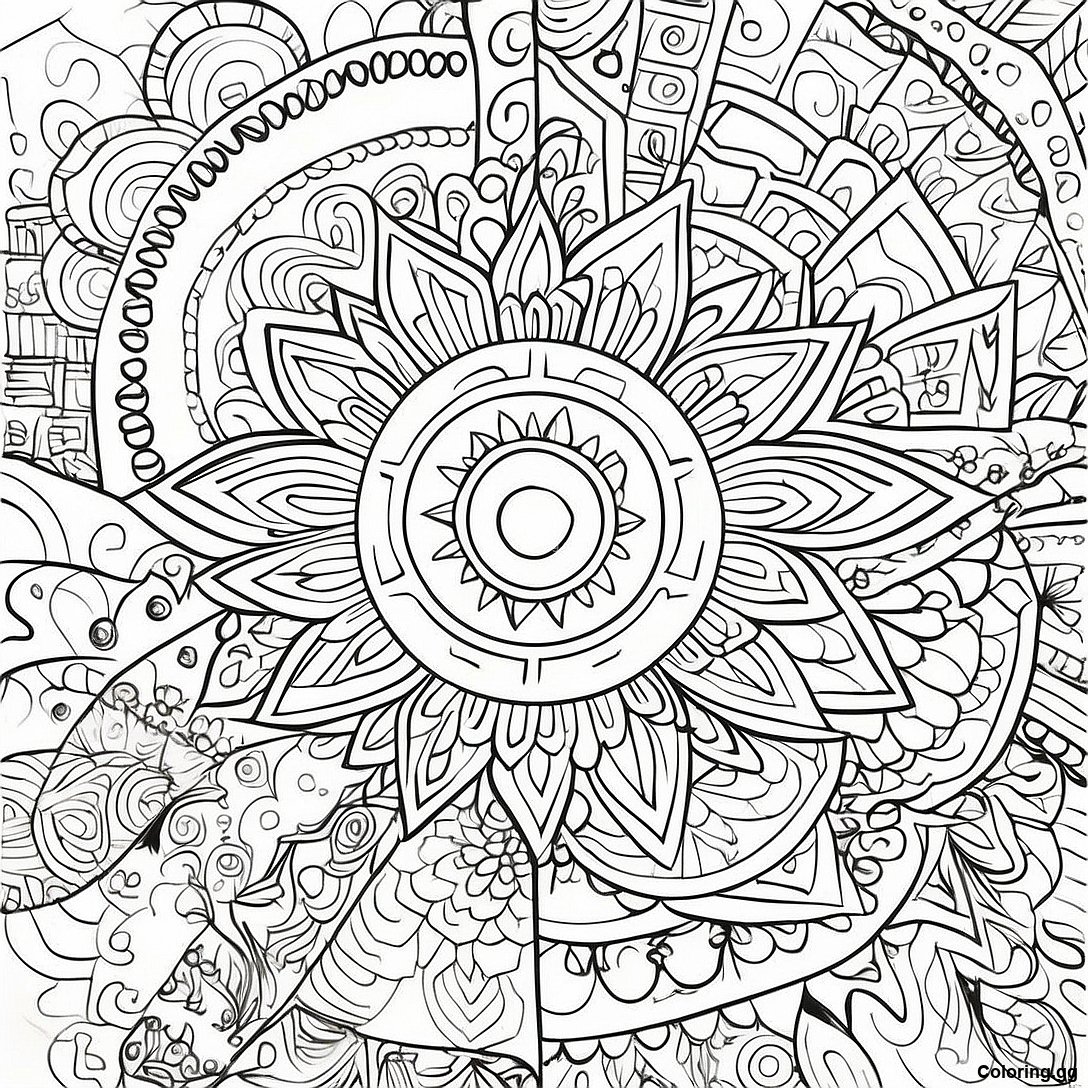 రంగులైన అందమైన ట్రిప్పీ మండల రంగుల పేజీ యొక్క ముద్రించదగిన పీడీఎఫ్‌ను డౌన్లోడ్ చేయండి
