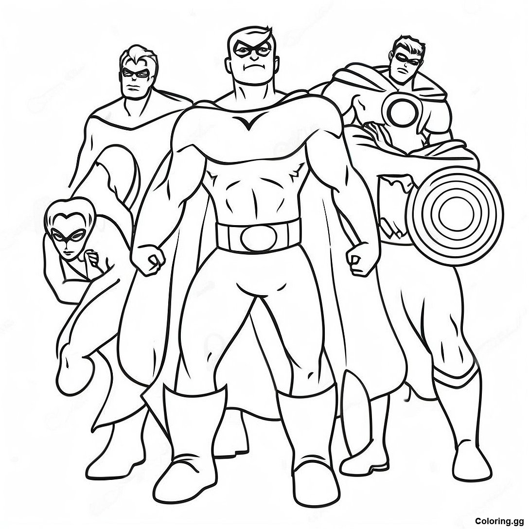 రంగురంగుల సూపర్హీరో బృందం చర్యలో రంగుల పేజీ యొక్క ముద్రించదగిన పీడీఎఫ్ను డౌన్లోడ్ చేయండి