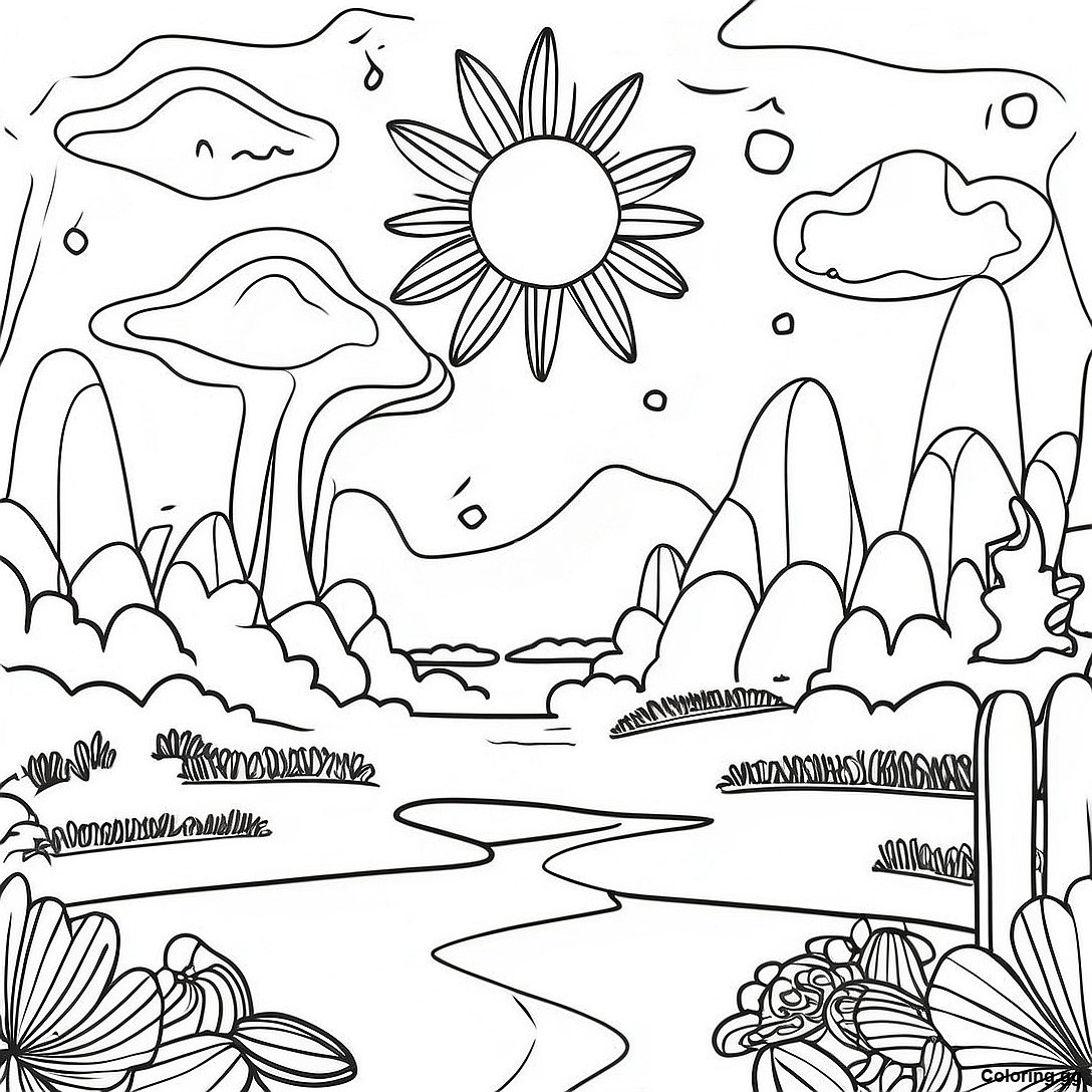 సైకడెలిక్ అందమైన ట్రిప్పీ దృశ్యం రంగుల పేజీ యొక్క ముద్రించదగిన పీడీఎఫ్‌ను డౌన్లోడ్ చేయండి