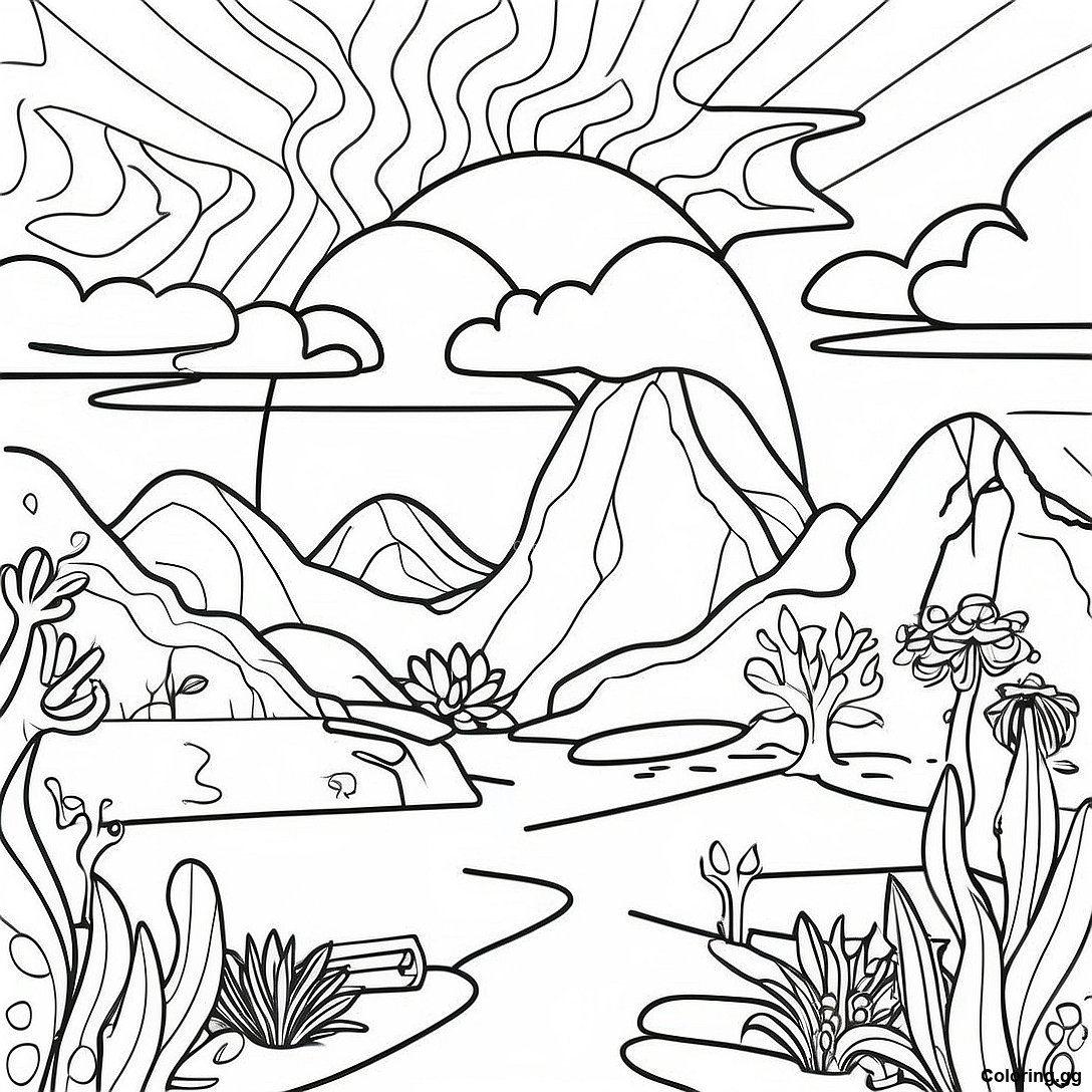 సైకడెలిక్ అందమైన ట్రిప్పీ దృశ్యం రంగుల పేజీ