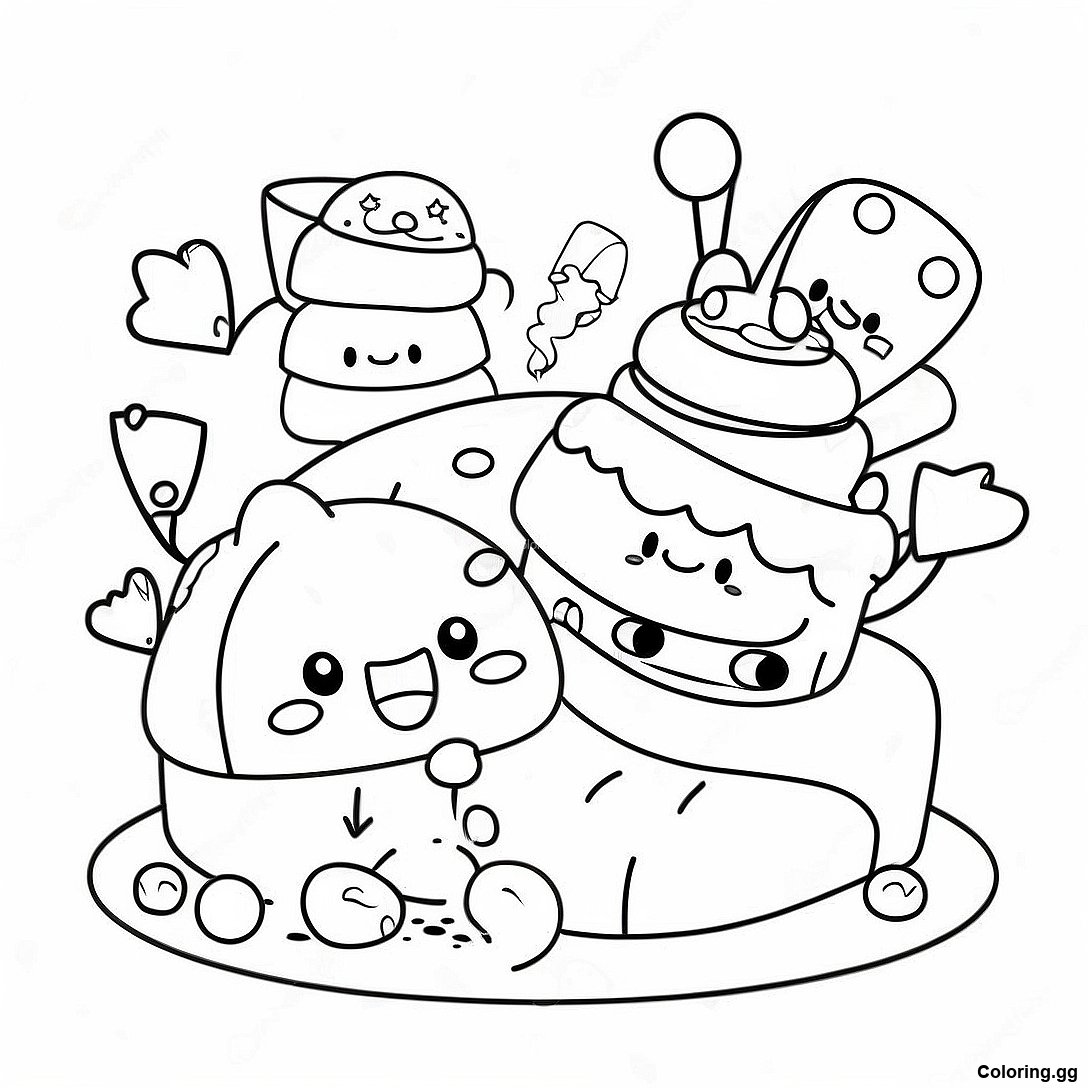 సంతోషంగా కలిసి ఆడుతున్న నమ్ నామ్‌లు రంగుల పేజీ