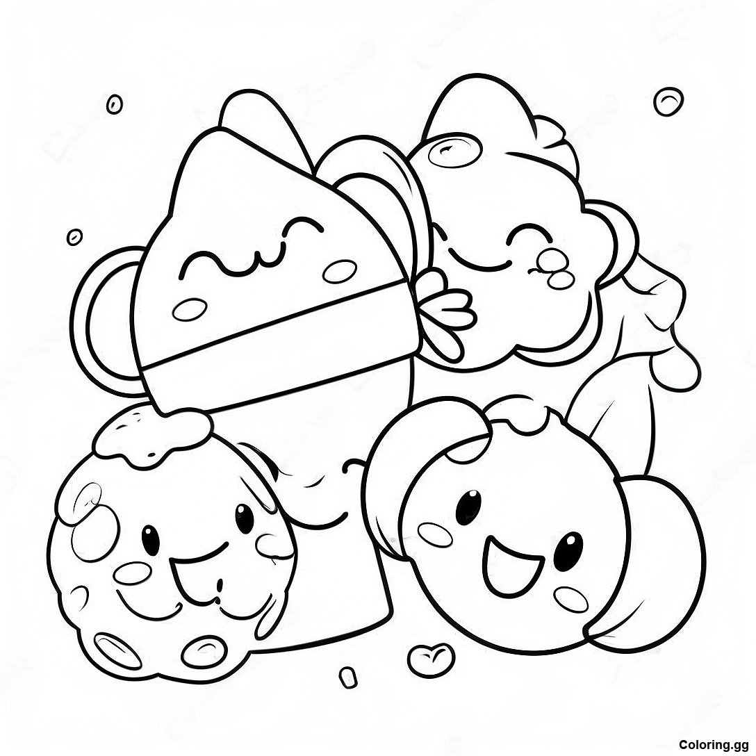 సంతోషంగా కలిసి ఆడుతున్న నమ్ నామ్లు రంగుల పేజీ