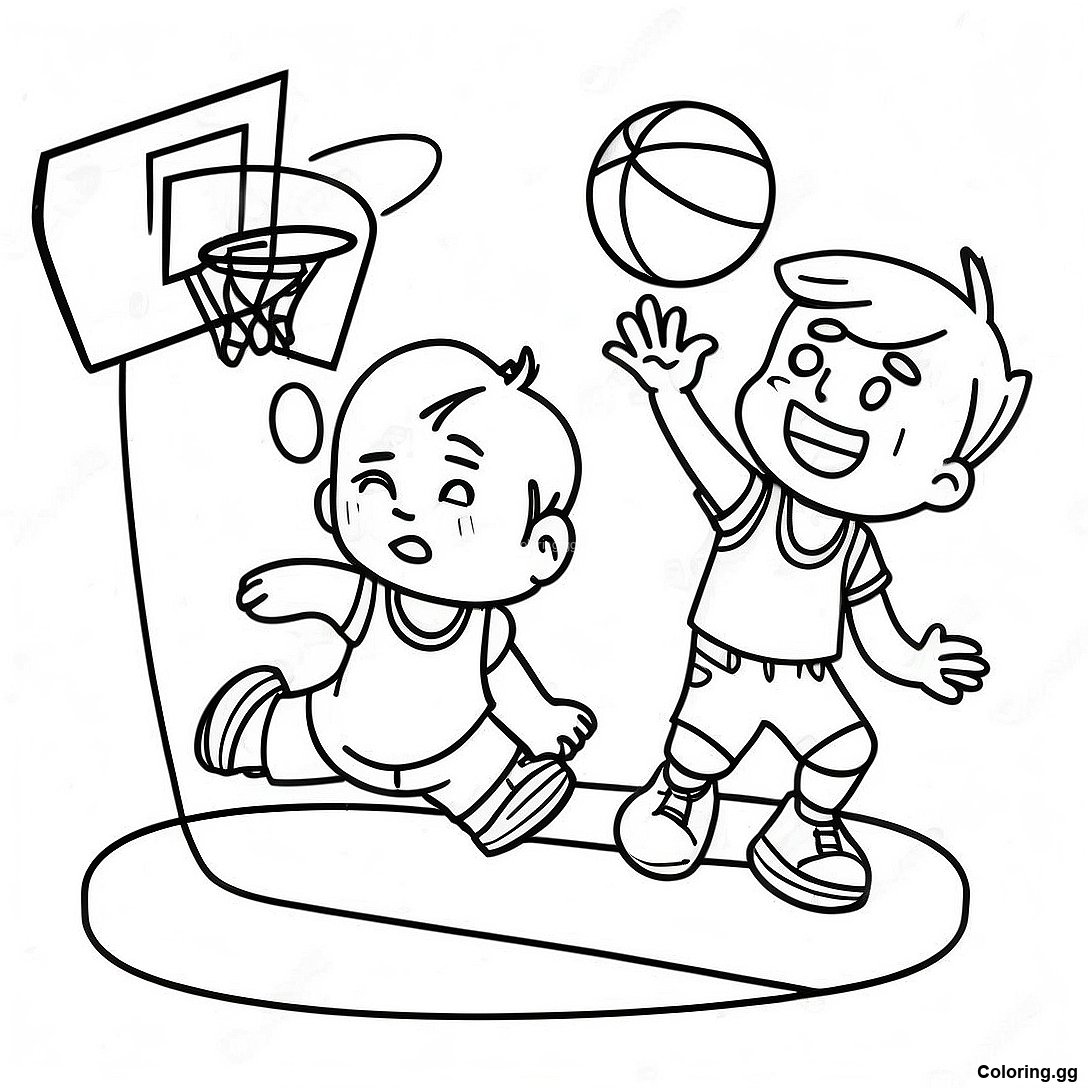 సంతోషంగా ఉన్న పిల్లలు బాస్కెట్బాల్ ఆడుతున్నారు రంగుల పేజీ యొక్క ముద్రించదగిన పీడీఎఫ్ను డౌన్లోడ్ చేయండి