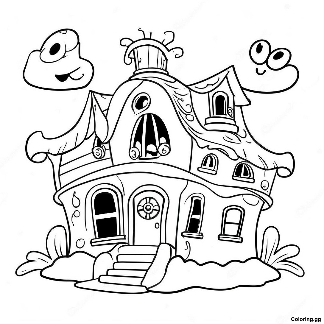 స్పాంజ్‌బాబ్ హాంటెడ్ హౌస్ రంగుల పేజీ