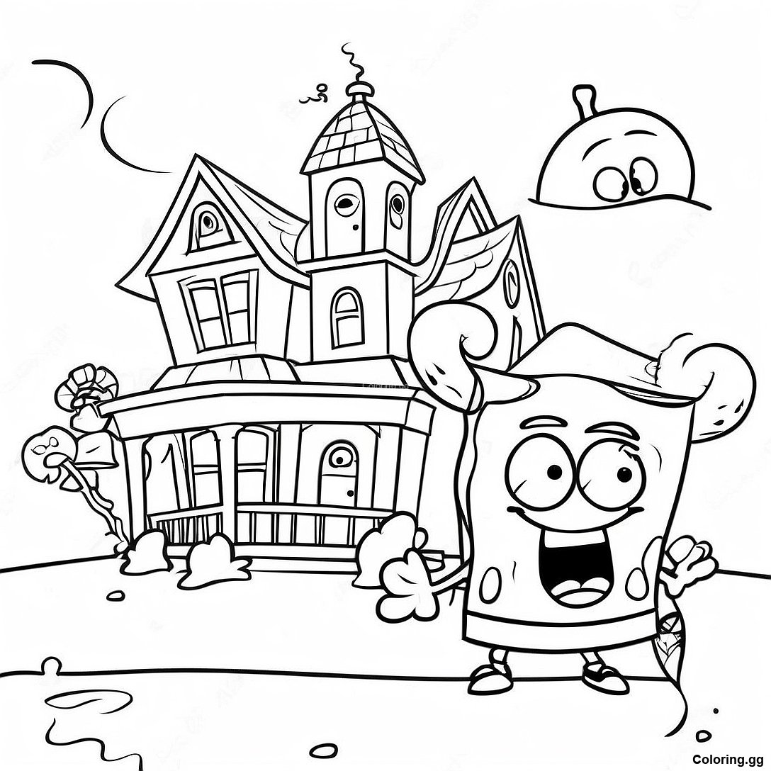 స్పాంజ్‌బాబ్ హాంటెడ్ హౌస్ రంగుల పేజీ