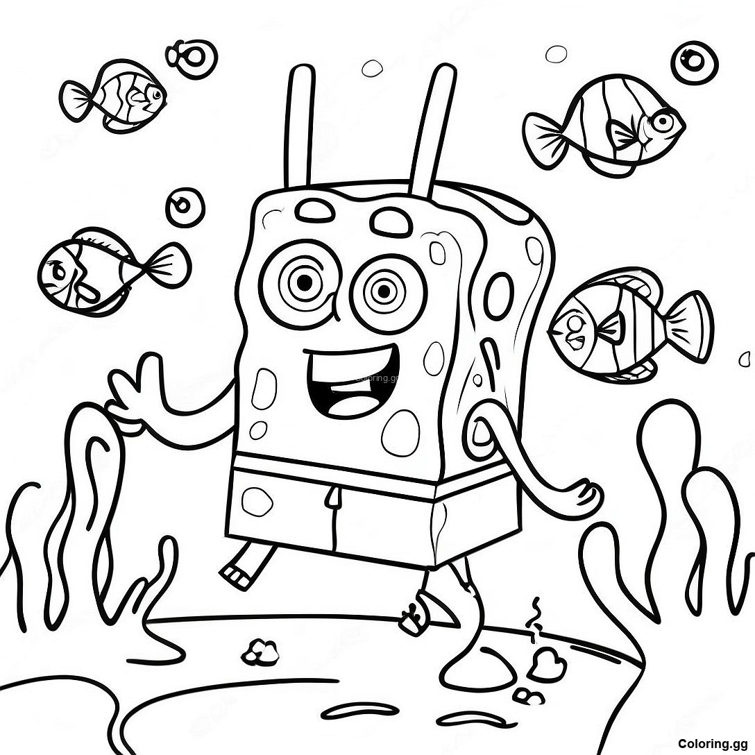 స్పాంజ్‌బాబ్ స్క్వేర్‌పాంట్స్ నీటి కింద యాత్ర రంగుల పేజీ