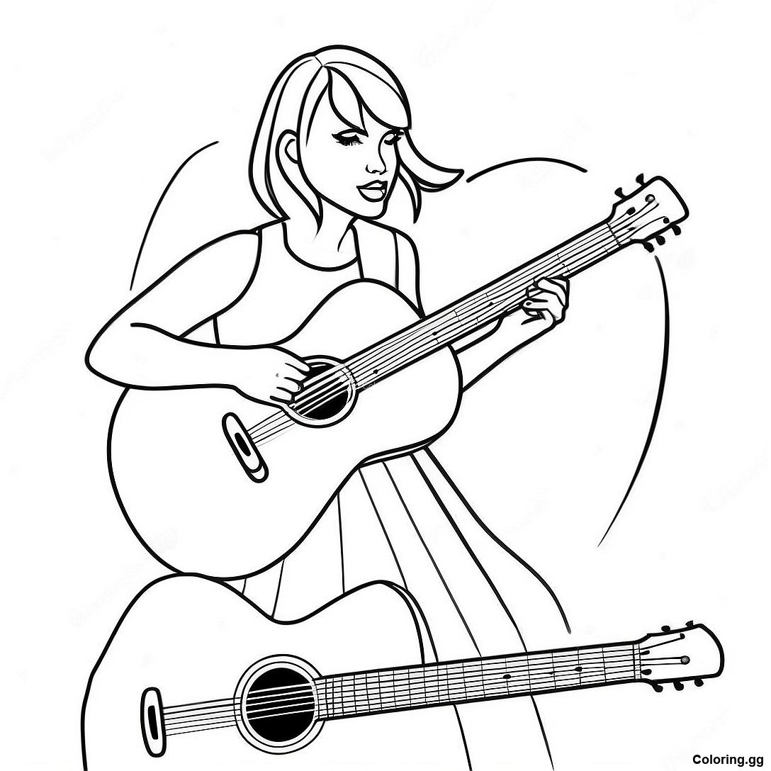 టేలర్ స్విఫ్ట్ గిటార్ తో రంగుల పేజీ యొక్క ముద్రించదగిన పీడీఎఫ్ను డౌన్లోడ్ చేయండి