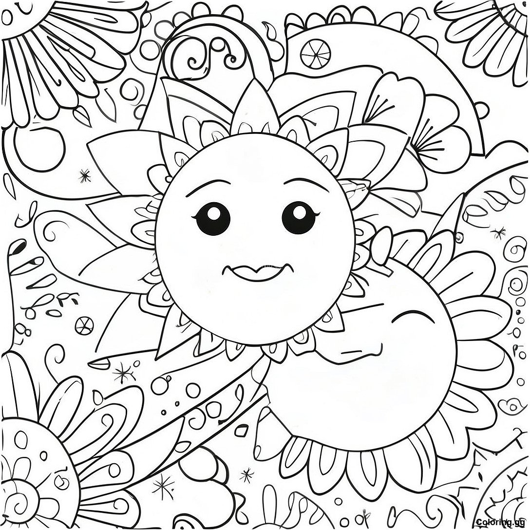 వింత బోహేమియన్ సూర్యుడు మరియు చంద్రుడు రంగుల పేజీ